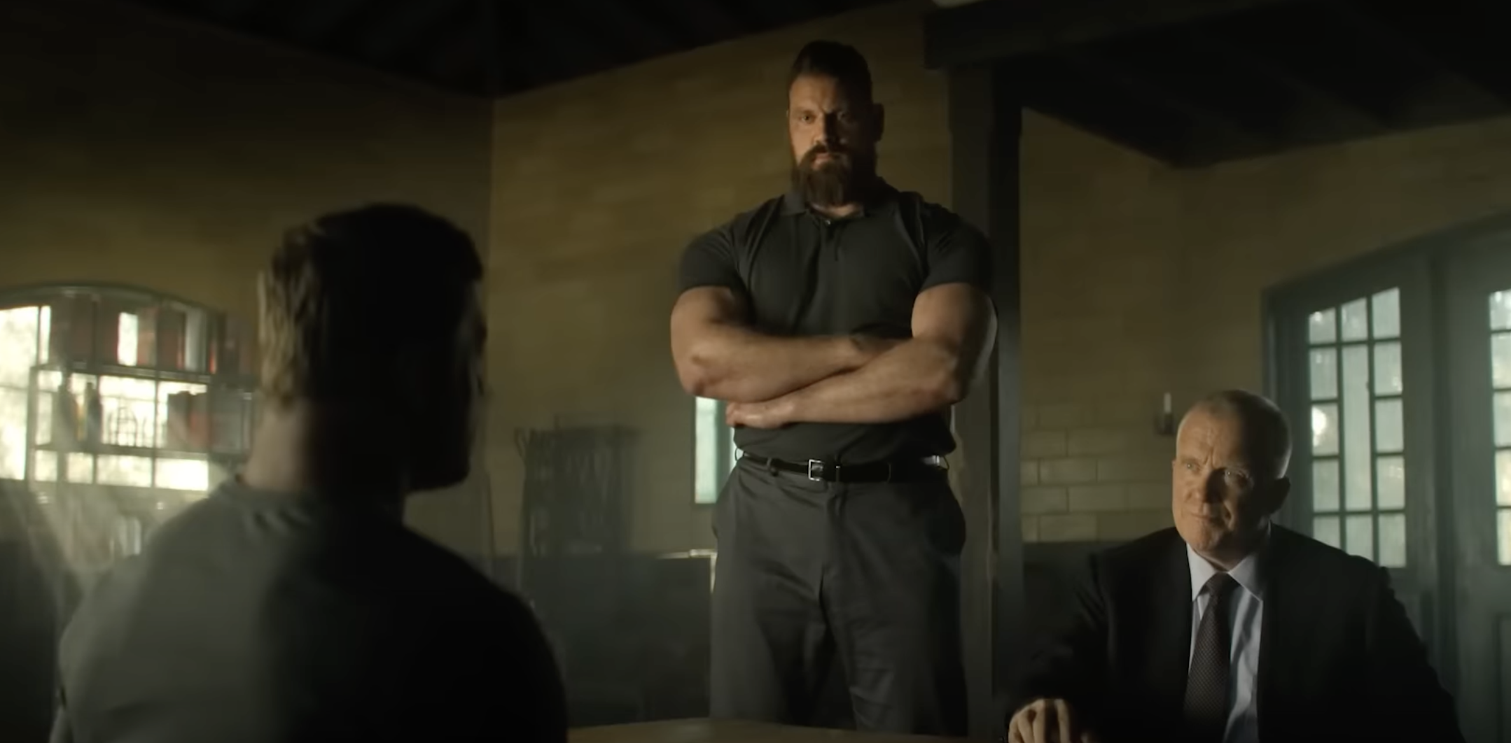 The villain upon which the promotional material has been most focused, though, is bodybuilder Olivier Richter’s Paulie, who will present the most physically imposing challenge for Reacher yet. Amazon have really been hyping up the macho tensions and inevitable head-to-head between the two characters, and this trailer is no different as it shows them duking it out on three separate occasions. The first shows them in a weight room, competitively lifting weights until they resort to arm wrestling, which ends with Reacher suddenly letting go of Paulie’s hand, consequently punching himself in the face. This moment is clearly signalling that while Reacher is at a rare physical disadvantage, he still possesses the smarts to outdo even the most imposing of foes. For the other two instances where they fight, one was already shown in the teaser, where Reacher punches Paulie in the stomach, to no avail, before he is all too easily smacked to the floor, while the other shows the two, battered and bloodied, facing off on Beck’s mansion grounds in what could be the season finale.