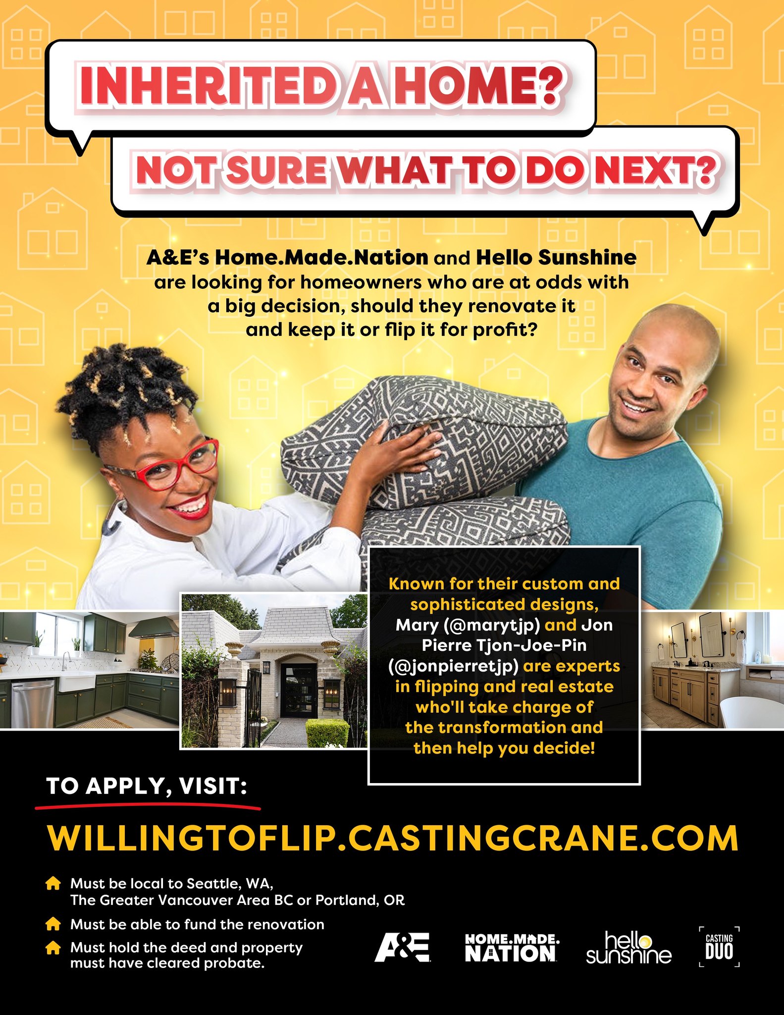 The series welcomes “ALL TYPES of families,” including siblings, couples, blended families, and more, reflecting the many ways inheritance and home ownership play out in real life. This inclusive casting ensures that the show mirrors the diversity of today’s households, moving beyond the outdated nuclear family model often seen in traditional renovation programming.